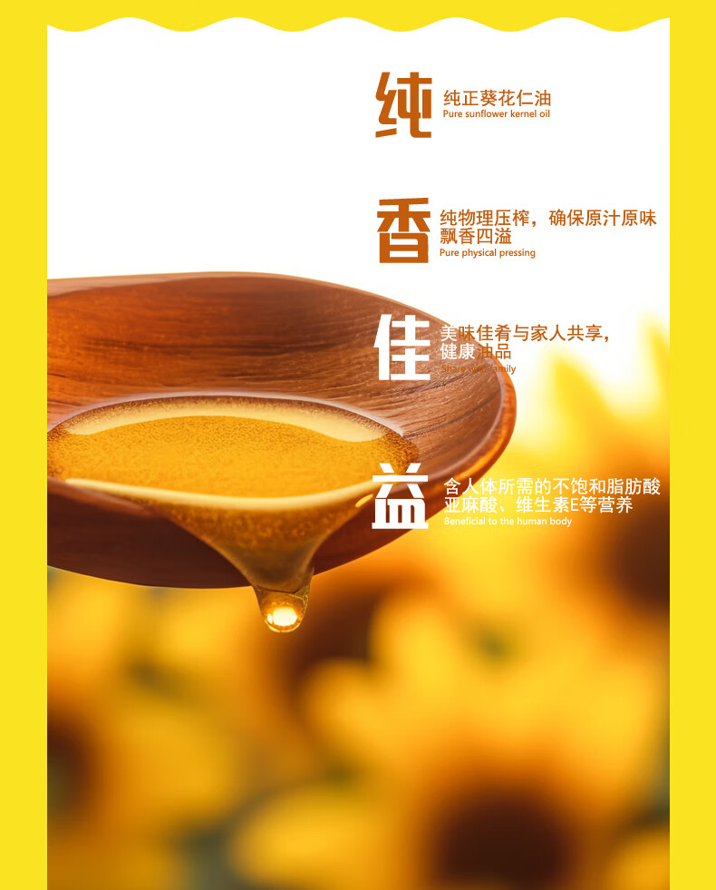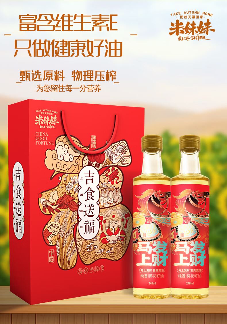 1.葵花籽油属于低脂油类,表面看色泽金黄、清明透亮、口感纯正。 2.葵花籽油中亚油酸含量高,其中不含芥酸、黄曲霉素等有害物质,食用安全健康。 3.精美手提盒包装 蛇来运转,万事顺。