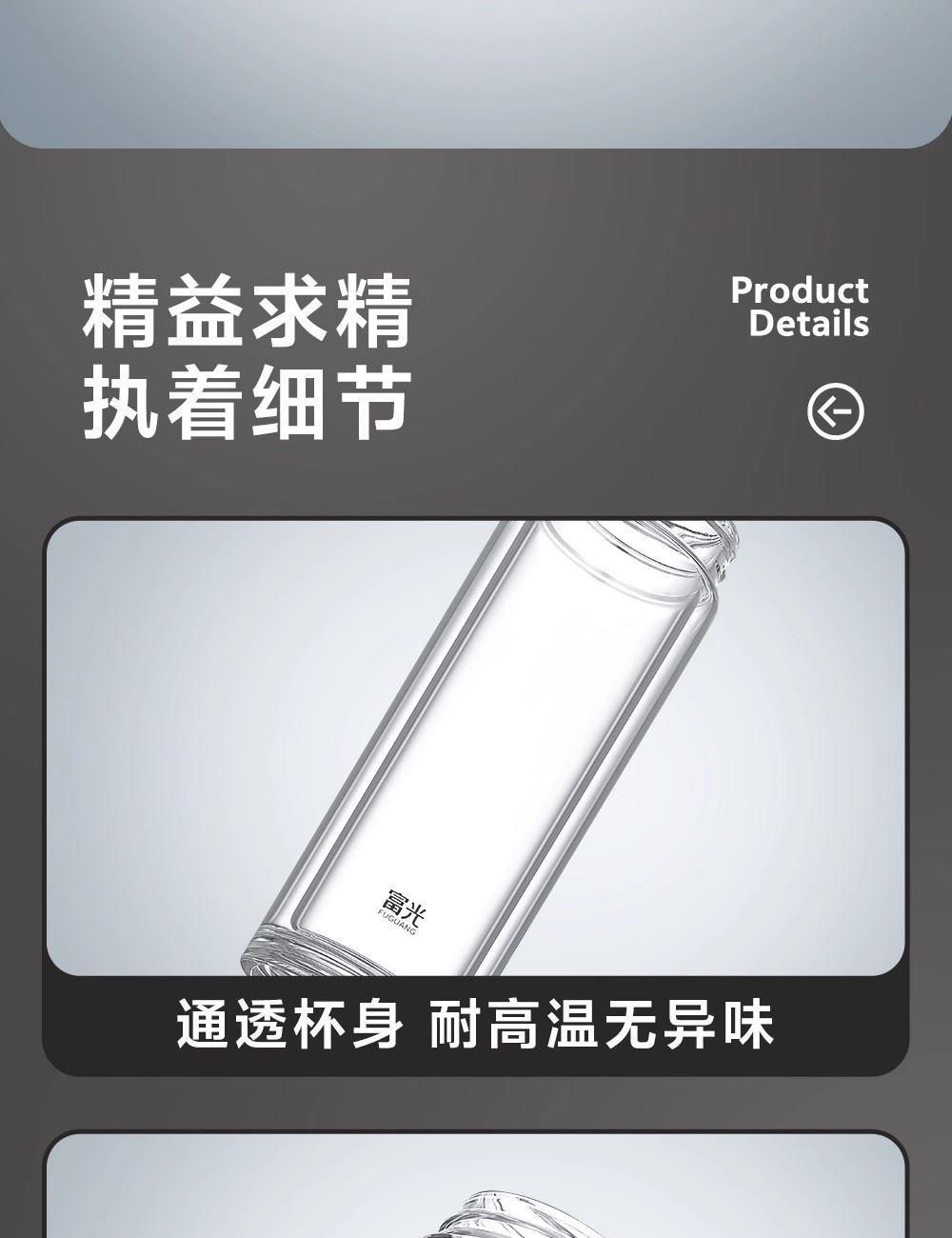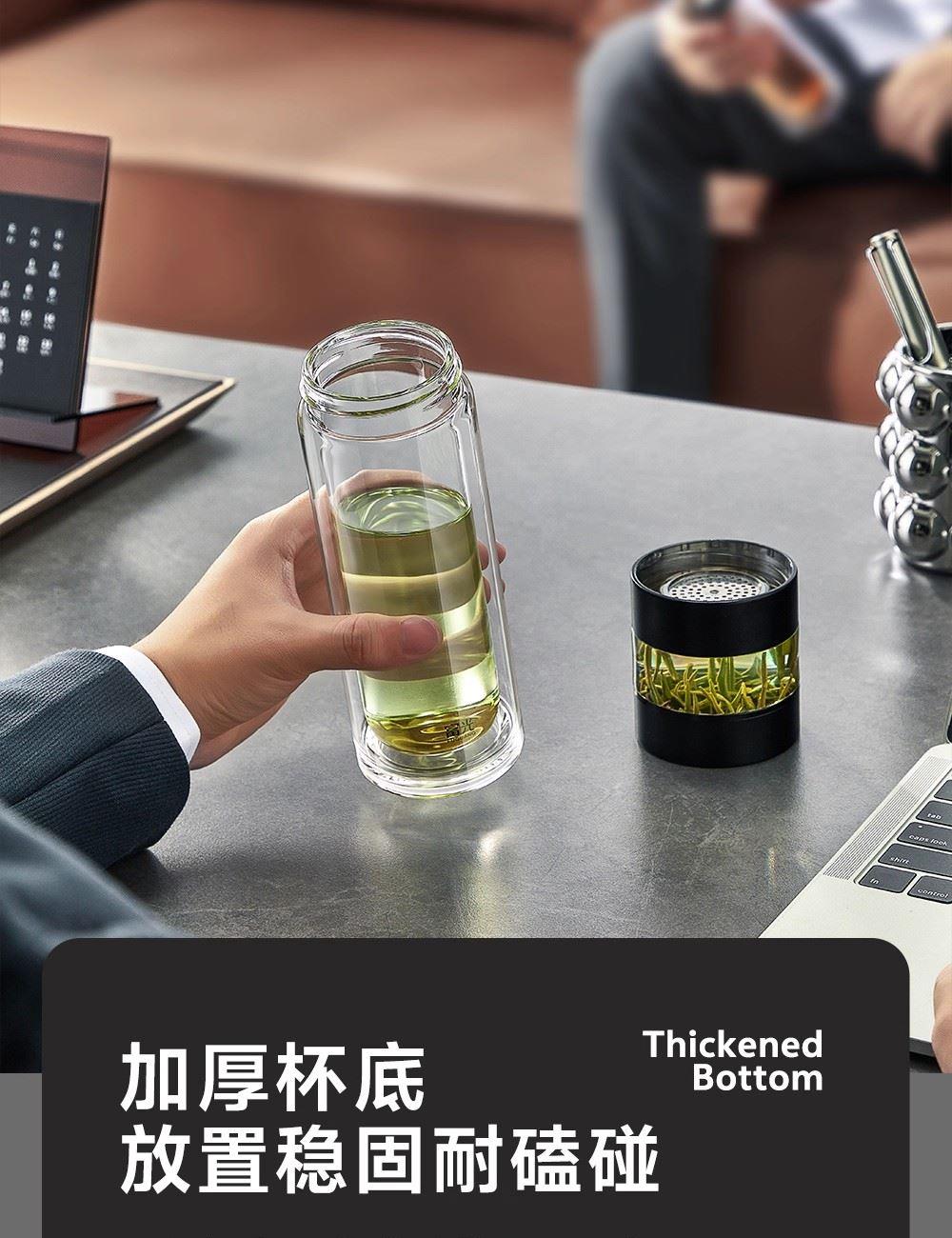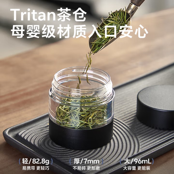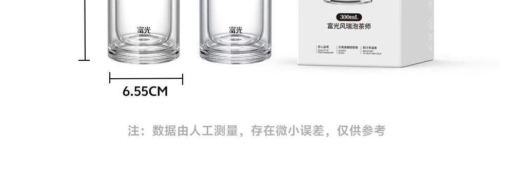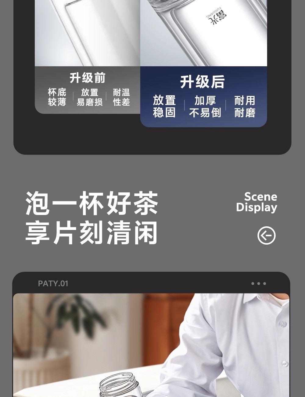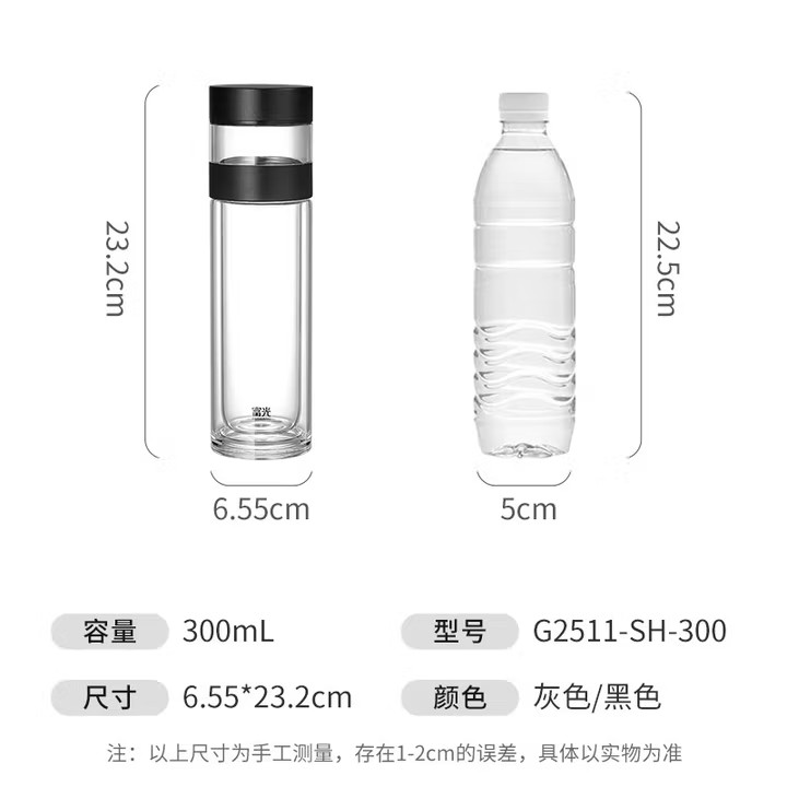容量:300ml 颜色:灰色 蓝色 尺寸:65.5*232mm 材质:铂金级双层高硼硅,加厚一体成型杯底。 金额数磨砂质感杯盖,316L不锈钢,婴幼儿级Tritan独立茶仓。 两种泡茶方式自由选择,一杯两用,大小杯随意切换(去掉茶仓秒变随行小杯),一立一斜实现茶汤分离。 包装:单瓦盒