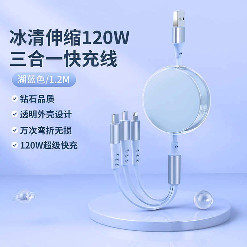 长 度:120cm 材 质:TPE+ABS+铝合金 颜 色:蓝色 粉色 紫色 绿色 接 口:苹果接口 安卓接口 Type-c接口 输出电流:5A 功 能:充电/数据传输 产品净重:50g