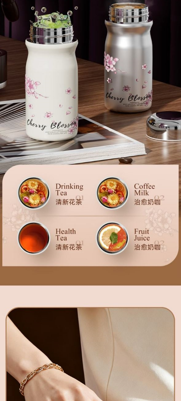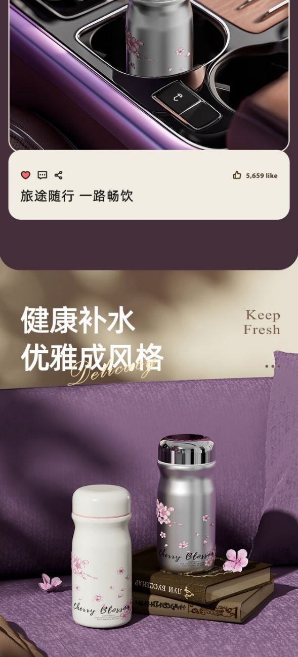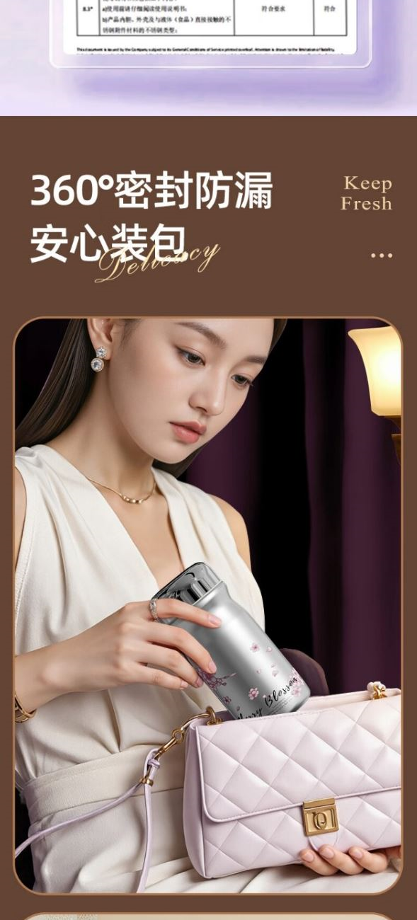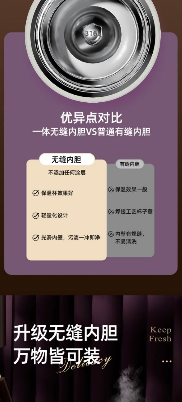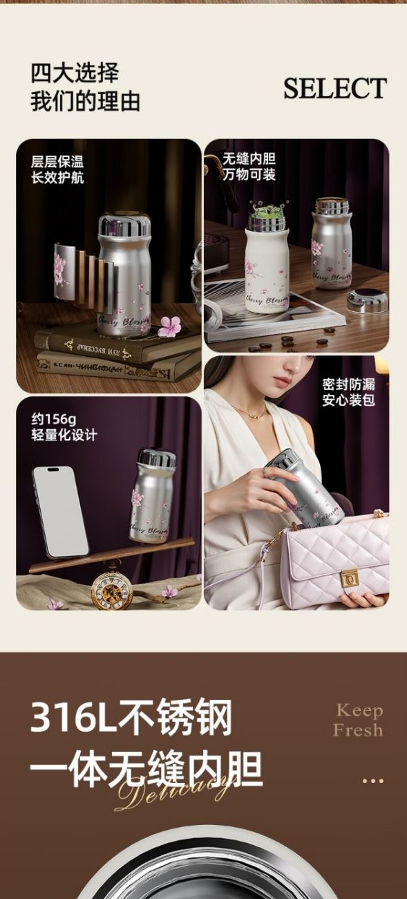 颜色:银色 白色 容量:218ml 尺寸:60*140mm 材质:316L奥氏体不锈钢内胆,316L不锈钢回流盖。 无尾真空超长保温。 超轻杯身设计,一体成型无缝内胆,随心泡饮,无惧酸碱。 包装:单瓦盒